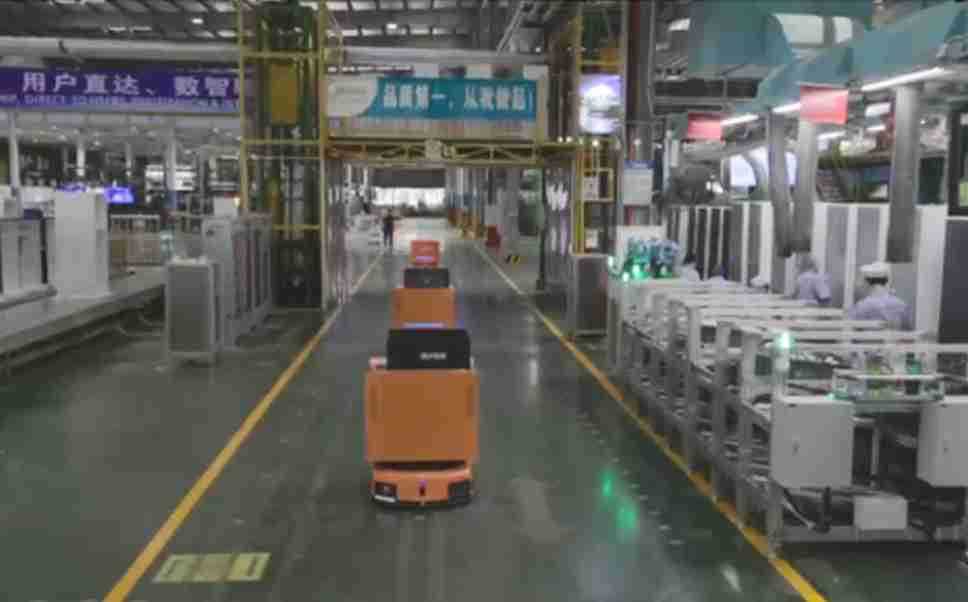 为车载冰箱物流配送打造的智能解决方案,,,包含产中物流通过潜伏举升AMR搬运至线边,,,,产后成品物流智能仓储,,,流程包含产中物流智能齐套入库,,,线边安灯叫料AMR智能配送至线边,,,成品入库、、、出库,,,通过无人堆高车机器人,,,,智能仓储管理替代人工作业管理,,实现更高存储、、、更高效率、、、、更具柔性化的解决方案。。
