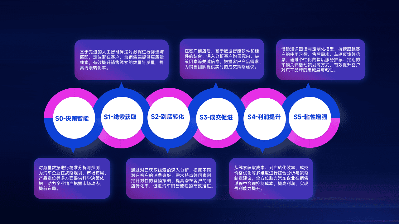 通过拓宽潜在客户来源、、、优化线索分配并提高到店转化率,,以增强销售效率。。同时,,,,利用线索数据不断优化分析模型,,,,有效提升转化率,,,扩大营销影响力。。。